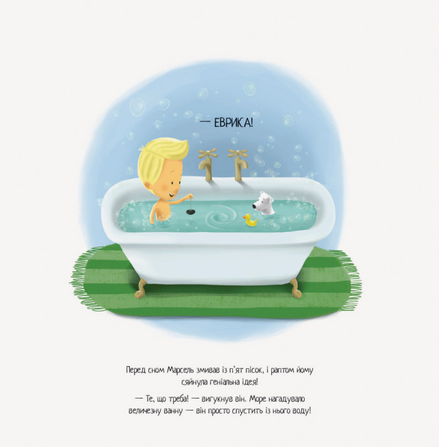 Маленький Марсель любив будувати замки з піску, проте морські хвилі завжди розмивали його неймовірні творіння. Аж поки одного дня Марселю не спала на думку чудова ідея — він попливе собі на дно моря і висмикне пробку!