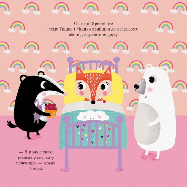 Книги серії «Мишко, Тишко і Яринка» — це турботливі помічники для малят, які пізнають навколишній світ. У кожній пригоді головних героїв — лисички Яринки, ведмедика Мишка та борсука Тишка — є ключі до певних ситуацій, що трапляються в житті кожного малюка та викликають безліч питань.