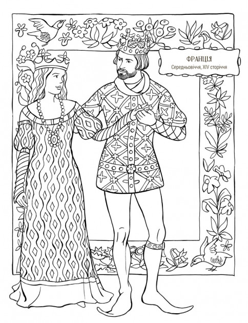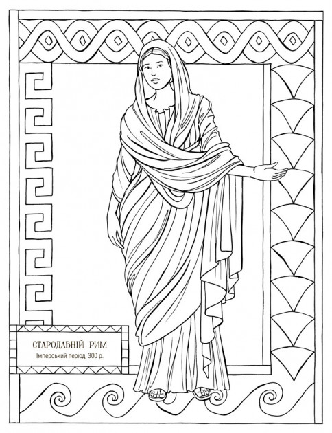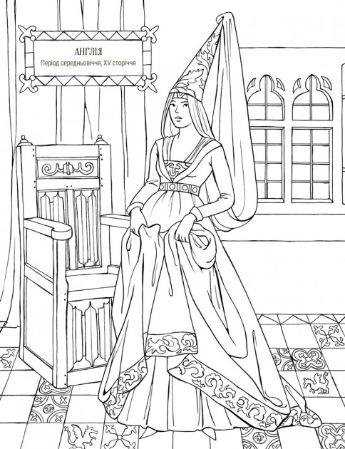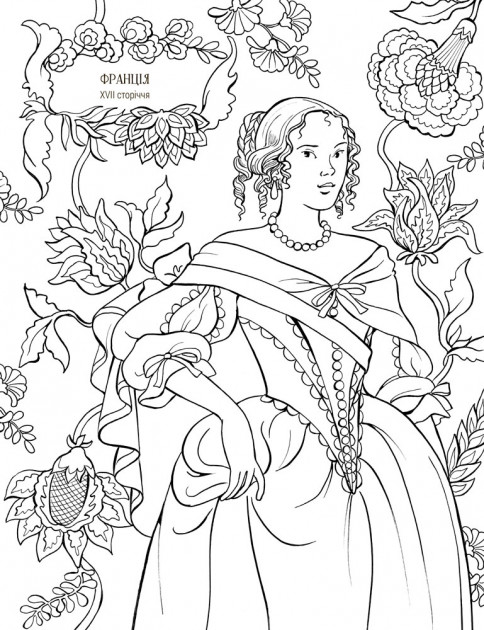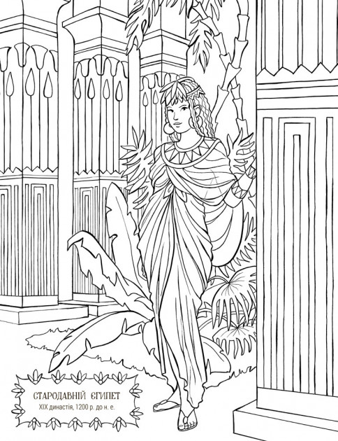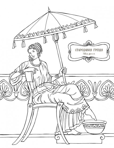 На сторінках цієї розмальовки можна прослідити як змінювались модні фасони та прикраси різних епох та країн.