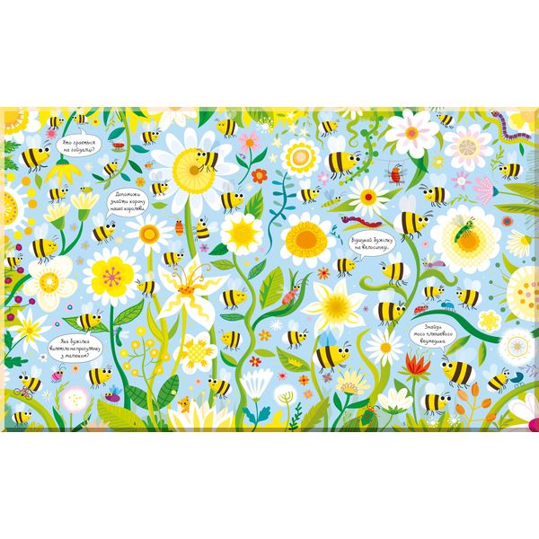 Запрошуємо найуважніших та найдопитливіших у захоплюючу подорож у світ комах! На кожній сторінці цієї дивовижної книги — безліч повзучих і летючих, кусючих і беззахисних, корисних і не дуже дрібних істот, різноманітних предметів і цікавих деталей, які треба знайти, порівняти та порахувати.