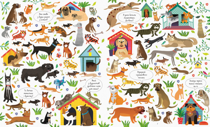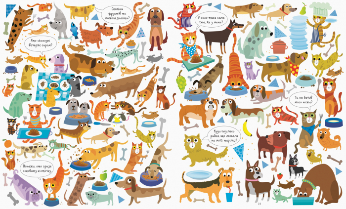 Запрошуємо найуважніших та найдопитливіших на прогулянку з милими домашніми улюбленцями! На кожній сторінці цієї дивовижної книги — безліч песиків та котиків, а також різноманітних предметів і цікавих деталей, які треба знайти, порівняти та порахувати.