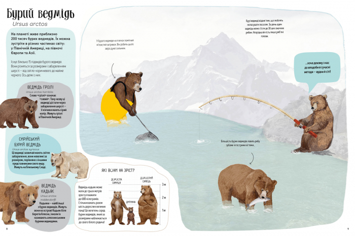 Познайомтеся із чудовим світом ведмедів у цій красивій новій книжечці. Дізнайтеся все про вісім видів ведмедів, які зараз є у світі, про те, як вони живуть і що їм подобається. Хто з них найкращий дереволаз, найзахопленіший рибалка?